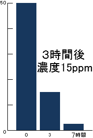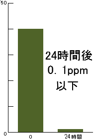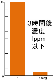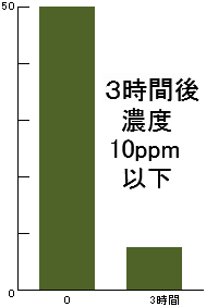 ■ホルムアルデヒド 初期濃度50ppmが3時間後15ppm、7時間後10ppm以下■アンモニア 初期濃度50ppmが3時間後10ppm以下■硫化水素 初期濃度10ppmが3時間後1ppm以下■黄色ブドウ球菌 初期生菌数を100%とすると24時間後10%以下まで減少■大腸菌 初期生菌数を100%とすると24時間後10%以下まで減少
